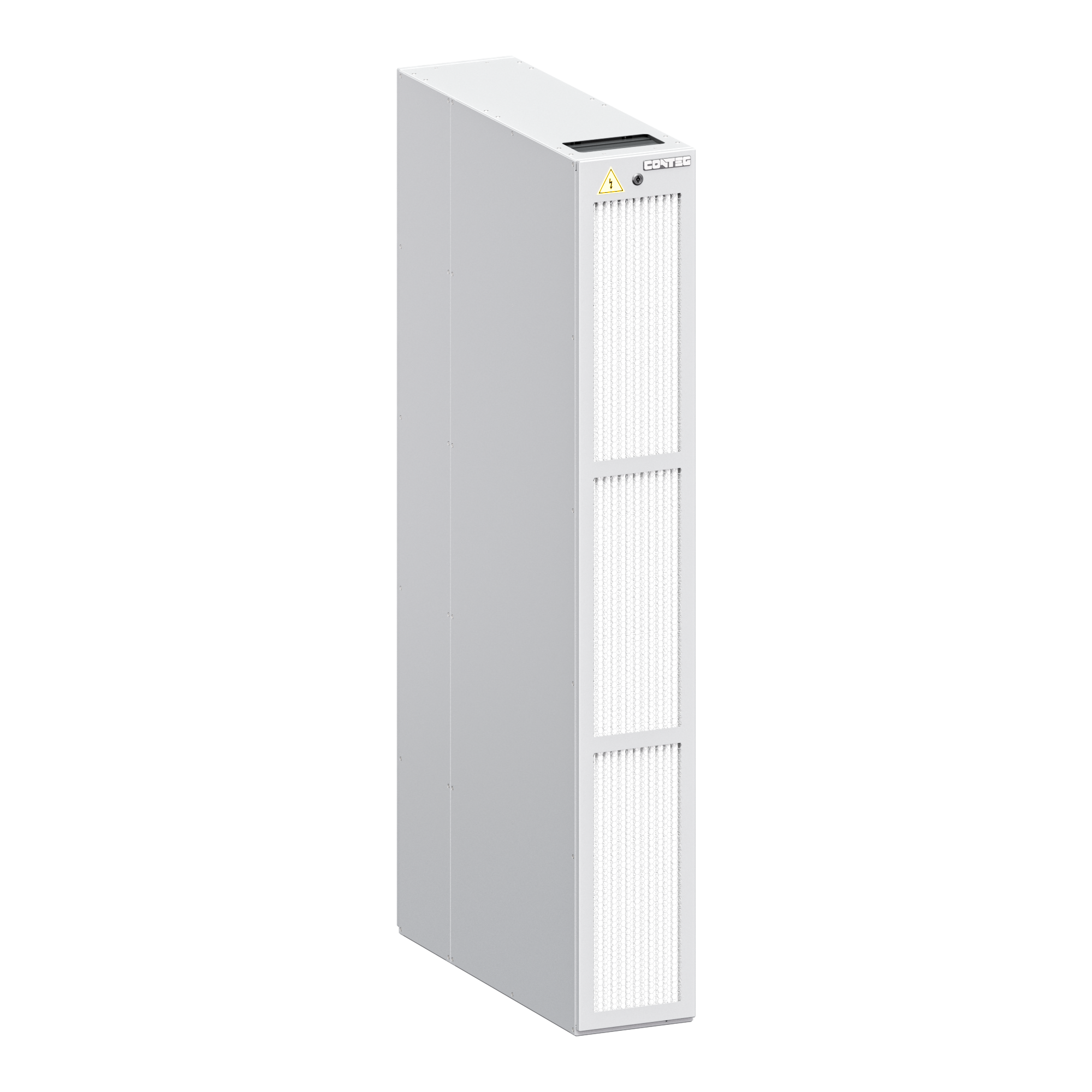 Units feature energy-efficient EC fans and an obliquely placed, high-efficiency heat exchanger. Temperature and humidity are measured in both the cold and warm zones, and intake and discharge areas are maximized to optimize air distribution. The main differences lie in the controller: we use a new controller platform running advanced CONTEG software with a 4.3" color graphic touch screen. One display can serve up to 30 air-conditioning units in the room with a maximum cable length of 500 m. The system communicates via TCP/IP, includes an integrated web server, and can be remotely monitored and controlled from a PC over the internet.